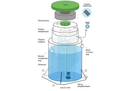 Евролос Био часть работающих аэробных микроорганизмов находится выше уровня воды на биопленке фильтра, в воздушной среде. Это позволяет пережить отключение света до нескольких дней и потом снова включиться в работу. Запах при этом также появляется.