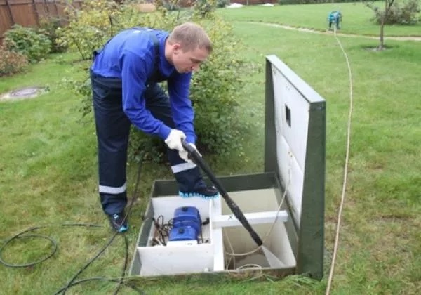 Септик Евролос био также нужно регулярно осматривать на предмет работоспособности насоса — единственного сложного элемента в этой станции. 15 минут он должен работать, 45 минут отдыхать. За этим следит простое электромеханическое реле. Жидкость в станции движется самотеком из отсека в отсек, поэтому ломаться и забиваться в станции больше нечему.